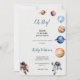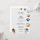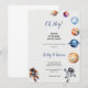 ASTRONAUTAS E PLANETAS BABYSHOWER CONVITE O Chá de fraldas temático Espaço com astronauta de bebê a aquarelas e elementos espaciais incluindo planetas, estrelas, um foguete e OVNI. Personalize com suas informações ou clique em "Clique para personalizar mais" para editar estilos de fonte, tamanho e cores.