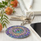 Chaveiro de Mandala, Astrosimbologia de Jeweled. Intrate Mandala com símbolos astrológicos, estrelas, planetas e sinais, outros símbolos antigos sagrados e místicos, um efeito joalhado com um símbolo OM sobre um yin-yang em lindas cores pastel.