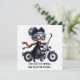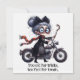 Cheio Throttle & Fright - Cartão de Feriado de Halloween da vovó Um ancião espiritual aproxima-se da estação assustadora com estilo, segurando sua moto vintage em uma mão e uma bengala torta na outra. Seus óculos superdimensionados, lenço flamejante, e pão volumoso cheio de um arco preto acrescentam talento ao seu conjunto gótico. Cercada por morcegos e atitude, ela é uma mistura mimológica de malícia, mistério e magia motorizada - prova de que o Halloween pertence ao ousado.