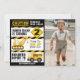 Toddler Construction Aniversário convite com caminhões de lixo e escavadores. Cuidado, dois terríveis à frente! Toddler Aniversário. Com Foto