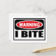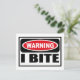 Atenção EU MORDO Cartão Postal você pode personalizar em www.WarningSignShirts.com e apresenta um sinal de aviso vermelho e preto e EU MORDO em letras pretas negrito para alertar o mundo. Você também pode personalizar seu próprio cartão postal de aviso com o texto que desejar.