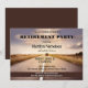 Um convite de festas de aposentadoria retrógrado com uma estrada com uma carrinha de camper à distância em uma paisagem rural. O bar marrom escuro na parte inferior da frente da placa é um objeto separado e pode ser removido no editor avançado se você não precisar.