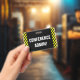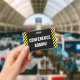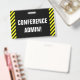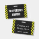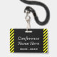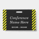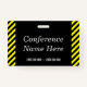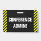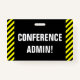 Este design de crachá de leitura apresenta a mensagem "CONFERENCE ADMIN!". Também apresenta faixas de precaução amarelas e pretas. A parte traseira apresenta um nome de evento personalizável e data(s) de evento. [~Z0000286]