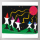 Poster de arte dos Gnomos Noturnos "Atire na Lua". Um poster de capricho para aqueles que apreciam o incomum e diferente. Negrito e colorido, faz uma declaração.