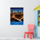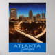 Poster em uma ilustração do horizonte Atlanta Georgia contra um céu estrelado, com faixas iluminadas de ouro de trânsito