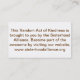 Peça estes cartões pequenos, e quando você faz um ato aleatório da bondade em nome da irmandade Alliance, deixe isto como seu cartão telefónico! É uma grande maneira de impactar positivamente sua comunidade e de espalhar nossa mensagem.