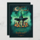 Attractive & Mystical Halloween Witch Conjures Enchanting Spells Amid Glowing Candles And Vibrant Pumpkins Under A Moonlit Teal Sky Bridesmaid Proposal Cards.