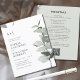 Código QR atualizado - Orçamento tudo em um com código QR RSVP Elegante Watercolor Eucalyptus Wedding Convite.. Nosso convite de casamento botânico duplo, de barato lado a lado, apresenta um galho elegante de eucalipto com aquarela em tons verdes poeirentos, definindo o texto do convite ao lado dele. A luz verde empoeirada do convite contém todos os detalhes que você normalmente veria em cartas separadas dentro do pacote de casamento. Este convite de casamento, no estilo moderno, foi concebido para ser elegante e consciente do orçamento... para não falar em poupar tempo. No verso há também um modelo gráfico de código QR que você pode substituir por seu próprio código digitando o URL do seu site de casamento no modelo de personalização. Todo texto de exemplo pode ser facilmente revisado com suas próprias informações no mesmo modelo de personalização. NOTE: O cartão "Orçamento" não é exatamente o mesmo que os convites tradicionais de cartão simples. Nossos cartões de orçamento são de 4,5 x 5,6 polegadas feitos de papel semirbrilhante de 110 lb comparado com os tradicionais cartões planos de convite de casamento de 5 x 7 polegadas em papel mate de 120 lb. Além disso, os cartões de orçamento não vêm automaticamente com envelopes, assim como os cartões de convite tradicionais, mas você pode comprá-los na mesma página na saída, se desejar. Tudo isso em um design de orçamento também está disponível em um tradicional cartão de convite de casamento 5x7.