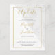 Informe seus amigos e família sobre sua mudança de planos com esses cartões de anúncio "Atualizações" chic. Quer você esteja adiando seu casamento e não conheça a nova data ou conheça a nova data e queira informá-los o mais rápido possível, você pode facilmente personalizar essas cartas para fazer isso! Apresentando uma borda falsa de folha de ouro com fundo branco e mármore e um roteiro clássico e uma tipografia serif.