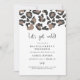 Este convite de solteira e modelo itinerário apresenta um padrão de impressão leopardo e uma letra escrita à mão. Use esta modelo para editar o texto *mais*, a fonte, a cor da fonte e a cor do plano de fundo para corresponder ao seu estilo de evento. Este convite é perfeito para o seu fim de semana selvagem ou de praia.