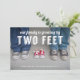 Compartilhe uma fotografia fofa das suas calçados ao lado de um par de calçados de bebês com este adorável anúncio de gravidez. O cartão com fotos de sangramento do cheio apresenta "nossa família está crescendo a dois pés" como uma sobreposição de texto branco. Personalize com seus nomes e a data de chegada prevista do bebê ao longo do fundo. Cartões invertidos para um padrão de ikat de cinza neutro.