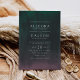 Dramaticamente elegante em tons de azul-da-meia-noite, verde-jade e roxo rico, nosso convite de casamento Aurora pega sua pista dos nortes ou aurora borealis, fenômeno atmosférico que ilumina o céu noturno em tons brilhantes. Cartões de convite apresentam uma lavagem com gradiente de aquarela em verde e roxo em um fundo do céu à meia-noite, com seus detalhes de casamento exibidos em elegantes letras brancas. Cartões à volta de azul-da-meia-noite.