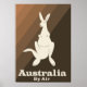 Austrália Por Air Kangaroo poster de viagens, poster de viagens australiano estilo vintage.