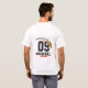 Esta imagem mostra um homem vestindo uma camiseta branca, de manga curta, com um design gráfico ousado e estilizado. O design central é o grande número "09" numa fonte grossa, preta e achatada com um contorno branco, que lembra os números de camisolas esportivas.