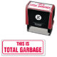 Este design de carimbo de bobo apresenta o seguinte texto: "ESTA É A GARBAGEM TOTAL" dentro de um retângulo com cantos arredondados.