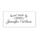 Personalize seus produtos com este carimbo de borracha que apresenta um script elegante e manuscrito personalizado "feito à mão" com um redemoinho no centro e seu monograma abaixo na mesma fonte