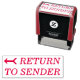 Este design de carimbo básico contém a mensagem "RETORNAR AO ENDER", juntamente com uma forma de seta decorativa. Pode ser utilizado para indicar que o correio recebido pode ter sido incorretamente endereçado e deve ser devolvido ao remetente.