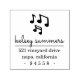 Nosso cunhado carimbo de endereço musical de retorno apresenta os detalhes do seu endereço de retorno em uma mistura de script de estilo manuscrito e letras clássicas de bloco, seguido de uma ilustração feita à mão de três notas musicais em preto.