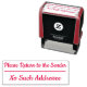 Este design de carimbo básico contém as mensagens "Please Return to the Sender" (Devolva ao Remetente) e "No This Addressee" (Nenhum Destinatário desse tipo). Pode ser utilizado para indicar que o correio recebido pode ter sido incorretamente endereçado e deve ser devolvido ao remetente.