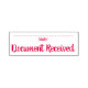Este design de carimbo mínimo contém as mensagens "Documento Recebido" e uma linha onde uma data pode ser escrita. Talvez pudesse ser utilizada para marcar a recepção de um envio postal ou de um documento no escritório de uma empresa ou de outra organização.