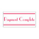 Este simples design de carimbo contém a mensagem "Pagamento concluído". Talvez possa ser usado para indicar que uma fatura ou fatura foi paga em cheio.