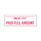 Este design de carimbo básico contém as mensagens "NÚMERO DE CHEIO PAGO" e uma linha onde uma data de pagamento pode ser escrita. Talvez possa ser usado para indicar que uma fatura ou fatura foi paga em cheio.