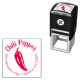 Esse selo de borracha de volta redondo e autopicante personalizável tem uma imagem de pimenta-do-pimenta no meio de um círculo. Seu nome e endereço formam um círculo ao seu redor. — Adicione seu nome na modelo para personalizar. Você pode alterar a fonte, coloração de tinta, mover coisas ou excluí-las. — Isso também está disponível em versões regulares de carimbo ou retângulos. — Use isso para sua empresa, ou se você é apenas uma cabeça de chili e adora comida picante ou pimentão. — Faz um presente único e personalizado para um cozinheiro, cozinheiro, comida, jardineiro ou fazendeiro, especialmente se eles fizerem seu próprio molho quente! — Veja mais carimbos de endereço de devolução personalizados e etiquetas de comida no Lápis da Alina.