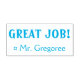 Este design de carimbo encorajador apresenta a mensagem encorajadora "EXCELENTE JOB!" e um nome de professor personalizado. Pode ser usado por um professor, educador ou orientador ao formando trabalho estudantil, para reconhecer que um estudante fez um trabalho excepcional.