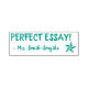 Este design de carimbo divertido apresenta a mensagem de elogio "PERFECT ESSAY!" e o nome de um professor ou educador personalizado. Ele também apresenta um ícone decorativo de estrela. Ele poderia ser usado por um professor, educador, ou tutor ao marcar tarefas, para reconhecer que um aluno fez bem.