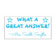 Este design de carimbo inspiracional apresenta a mensagem encorajadora "QUE RESPOSTA AO EXCELENTE!" e o nome de um professor personalizado. Poderia ser usado por um professor de escola, educador, instrutor ou tutor ao formando o trabalho de estudante, para reconhecer que um estudante fez um trabalho excepcional.