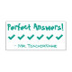 Este design de carimbo encorajador apresenta a encorajadora mensagem de feedback "Respostas Perfeitas!" e o nome de um professor personalizado. Ele também apresenta um ícone de marca de seleção decorativa. Ele poderia ser usado por um professor, educador, instrutor ou tutor ao marcar tarefas, para reconhecer que o aluno fez bem.