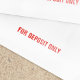Este simples selo de autoimpressão marca claramente os seus cheques "Apenas por Depósito", garantindo um banco seguro e eficiente. Seu design simples é perfeito para qualquer uso profissional ou pessoal. O tamanho compacto facilita o armazenamento e o uso, simplificando o processo de depósito.