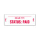 Este design de carimbo contém as mensagens "STATUS: PAID" (STATUS: PAGO), juntamente com um símbolo decorativo de libra e uma linha onde uma data de pagamento poderia ser escrita. Talvez possa ser usado para indicar que uma fatura ou fatura foi paga em cheio.