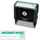 Este design de selo de borracha inspiracional mostra a mensagem elogiante "AWESOME WORK!" e o nome de um professor, educador ou orientador personalizado. Também apresenta uma marca de verificação decorativa. Ele poderia ser usado por um professor de escola, educador ou orientador ao marcar trabalhos, para reconhecer que o aluno fez bem.
