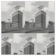 O tecido à moda caracteriza uma repetição do tijolo de uma fotografia preto e branco de uma torre semi-cilíndrica. O auto sinal ocidental sobre a construção é cercado por uma seta. Desde que o sinal não está paralelo ao lado liso do edifício do tijolo, tira a atenção ao design curvado da construção.