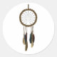 Esta design está fora de um apanhador de sonhos interessante. Pegue seus sonhos e durma mais fácil. O caçador de sonhos tem algumas penas penduradas por baixo. Este design de caçador de sonhos parece excelente nestes adesivos. Perfeito para si mesmo ou como presente