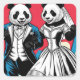Dois jovens pandas chineses acabados de se casar ainda vestidos com suas roupas formais