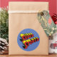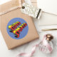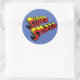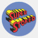 Design mostra as palavras "Super Stoked" em vermelho e amarelo em 3D escrevendo sobre fundo azul