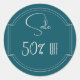 Estes adesivos básicos de venda marrom são personalizáveis. Você pode editar a porcentagem como quiser. O estilo azul a gasolina é mais adequado quando se vende artigos antigos, joalharia ou antigos.
