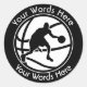 Este adesivo personalizado é decorado com o selo de basquete masculino personalizado com uma escolha de palavras acima e abaixo que lhe permite personalizá-lo com o nome de uma pessoa, local, posição, etc.