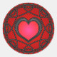 Vinheta com corações vermelhos/pretos e padrões metálicos giratórios em círculo.
