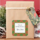 Um adesivo de panificação ou enlatamento personalizado com letras de guião e arte de férias vermelha e verde com um elegante padrão vintage fleur de lis restaurado a partir de azulejos antigos.
