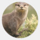 Adorável lontra do rio sentada em um caco.