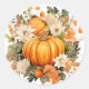 O adesivo é mostrado na redonda com uma adorável impressão floral de abóbora de abóbora. Personalize este item ou comprar como está. Imagem licenciada