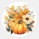 O adesivo é mostrado na redonda com uma adorável impressão floral de abóbora de abóbora. Personalize este item ou comprar como está. Imagem licenciada