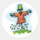 Não se assuste é só um espantalho. Eles são projetados para assustar os pássaros. Este espantalho tem uma parte superior laranja ligada e parece estar vestindo um balde em sua cabeça. Os braços estão esticados e estão em algum relva verde. Este design de espantalho parece excelente nestes adesivos. Perfeito para si mesmo ou como presente