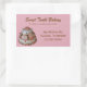 Bonito adesivos de produtos de padaria feitos em forma de retângulo rosa, com gráficos de um bonito bolo personalizado, no lado esquerdo. O texto castanho é totalmente personalizável para atender às necessidades de sua empresa. Anúncio de excelente e um belo toque final nas suas caixas de padaria.