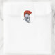 Um capacete de troia que parece pronto para a batalha é o que é esse design. Este capacete de troia tem um impressionante prato de cabelo vermelho correndo de cima para baixo. Este design de capacete de troia parece excelente nesses adesivos. Perfeito para si mesmo ou como presente