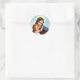 Esta linda representação da Madonna e da Criança é um dos nossos favoritos pessoais. A bela Virgem Maria tem um halo e está vestida de túnica azul e vermelha. A criança Cristo está sentada no colo da Virgem Mãe e tem o braço à sua volta. Ele tem um pequeno halo. Atrás deles estão céus e nuvens azuis. Uma Madonna e um autocolante.