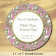 Um sabonete personalizado ou adesivo de cozedura, com um guião falsa em ouro e letras em bloco num padrão floral antigo elegante de rosas gravados em branco e dourados sobre fundo rosa empoeirado.